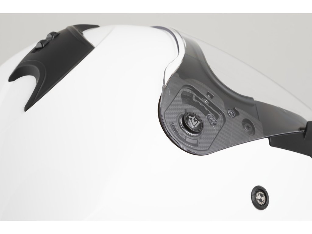 Polykarbonátová škrupina. Reflexné prvky. Plne odnímateľná a prateľná polyester výstelka. Rýchloodepínací mechanizmus plexi.