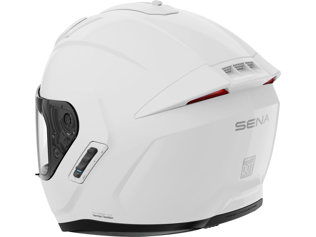 - Zadné svetlo má 3 módy a vôbec po prvýkrát u SENY reaguje na brzdenie, kedy svieti ešte jasnejšie. Nastavuje sa v aplikácii SENA Motorcycles