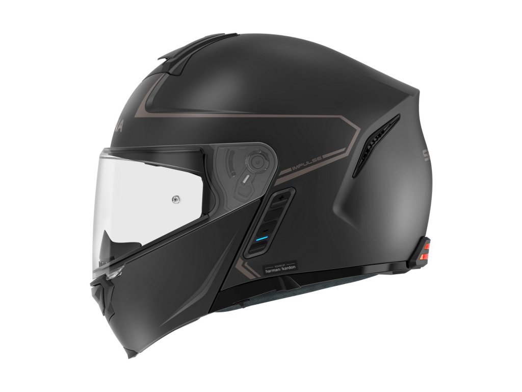 Úplne nová prilba Impulse je modulárna inteligentná prilba, ktorá je vybavená špičkovou technológiou Mesh Intercom™ a Bluetooth® Intercom od spoločnosti Sena a prémiovými reproduktormi a mikrofónom od zvukových expertov Harman Kardon. S pomocou spoločnosti Harman Kardon prinášajú odborne vyladené reproduktory modelu Impulse novú úroveň presnosti a čistoty zvuku v prilbe a úplne nový mikrofón bezprecedentnú kvalitu vychádzajúceho zvuku. Prilba sa môže pochváliť integrovaným zadným svetlom pre lepšiu viditeľnosť jazdca a praktickou výsuvnou slnečnou clonou. Prilba Impulse bola vyrobená so sklolaminátovou kompozitnou škrupinou s certifikátmi DOT a ECE a má stredne oválny strih. Štyri strategicky umiestnené vetracie otvory, vetrací otvor na brade, horný vetrací otvor a dva zadné vetracie otvory umožňujú prúdenie vzduchu počas jazdy.