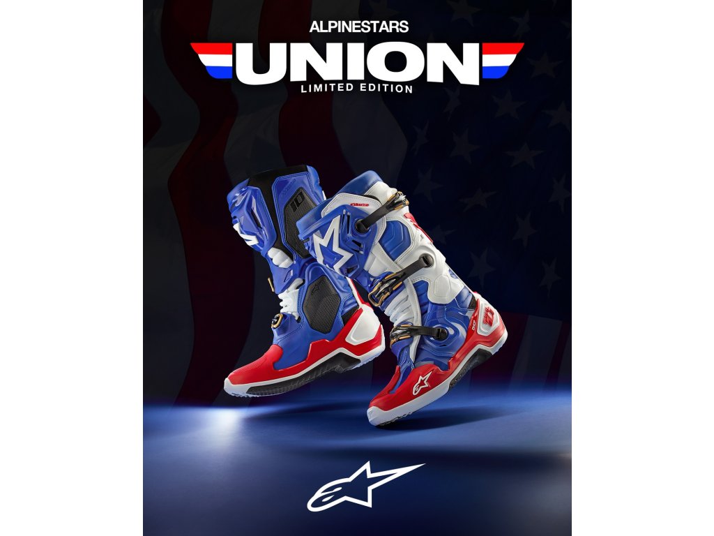 topánky TECH 10 limited edition UNION REDBUD MX ALPINESTARS red/blue/white/black 2024
