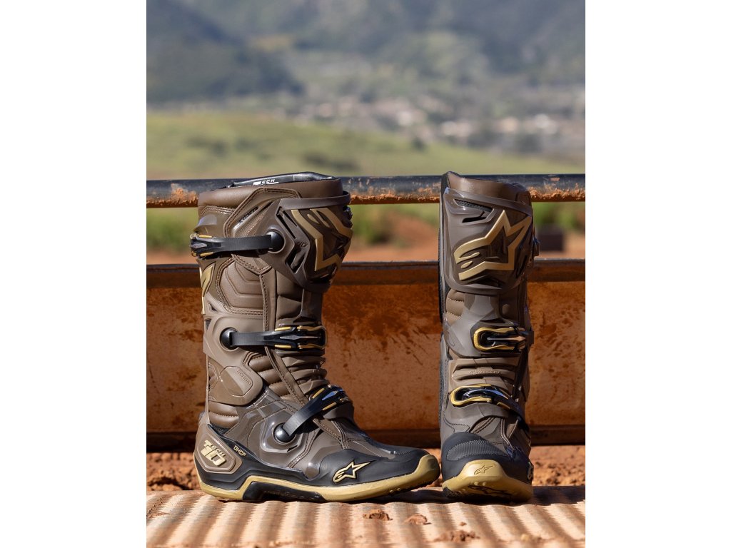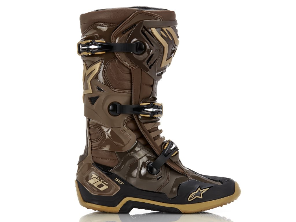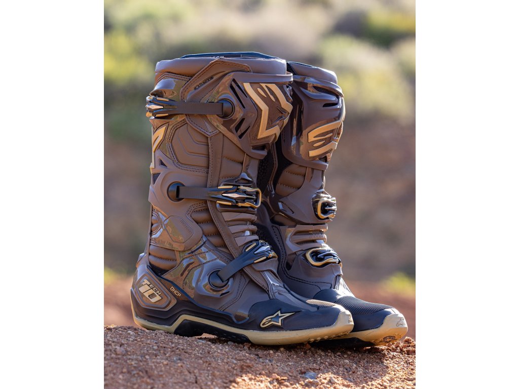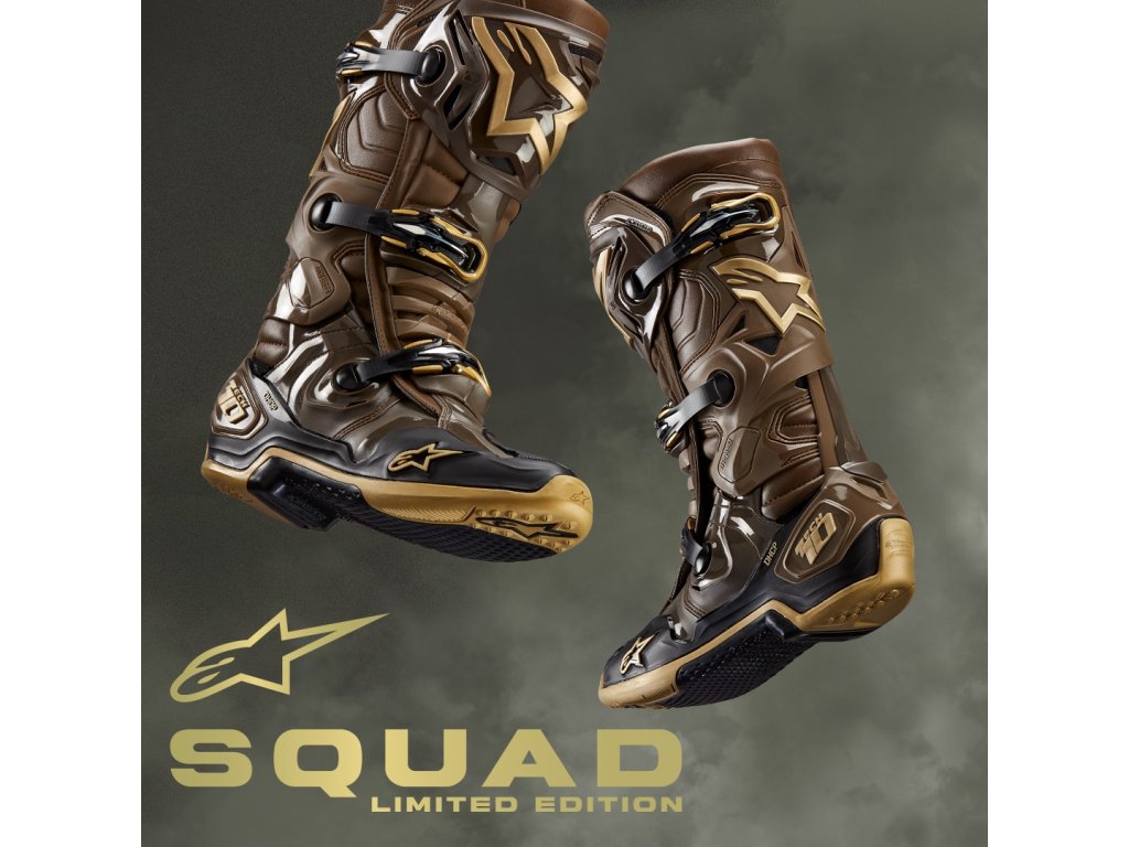 topánky TECH 10 limitovaná edícia SQUAD ALPINESTARS tmavohnedé/zlaté/čierne