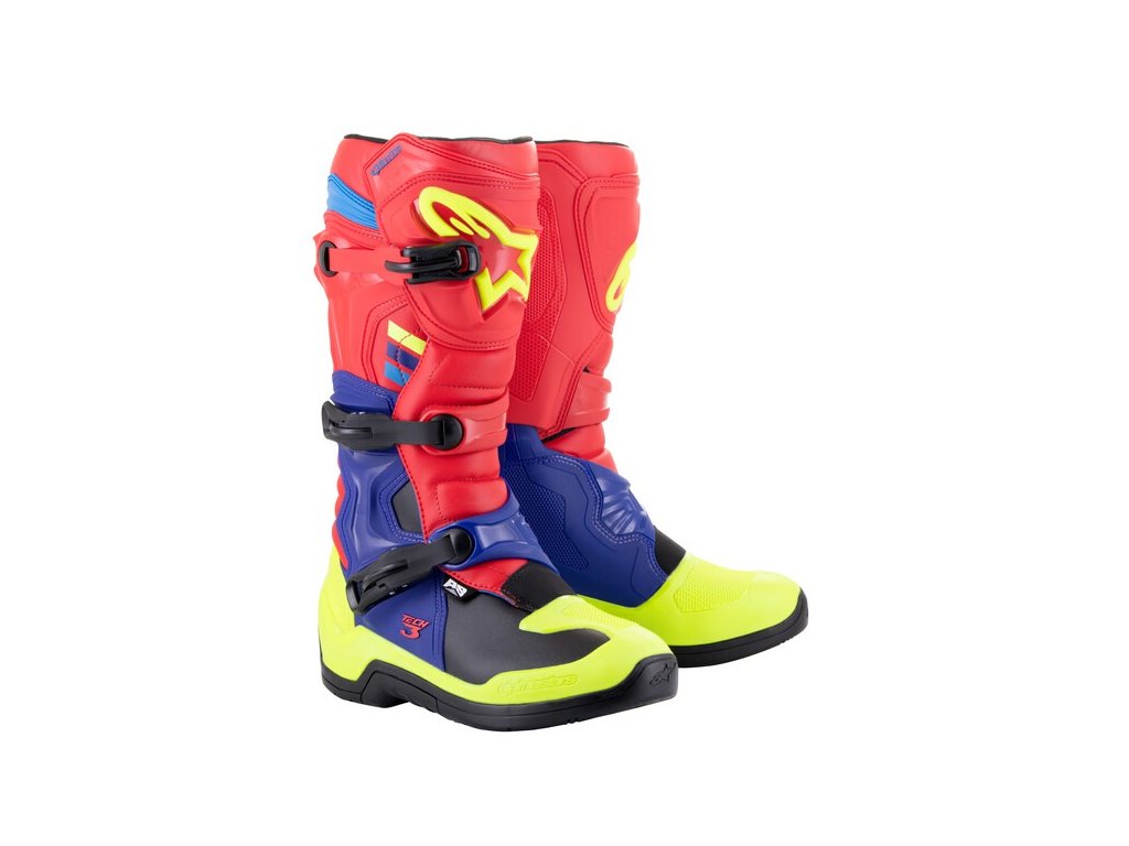 topánky TECH 3 ALPINESTARS červená/modrá/žltá fluo/čierna 2025