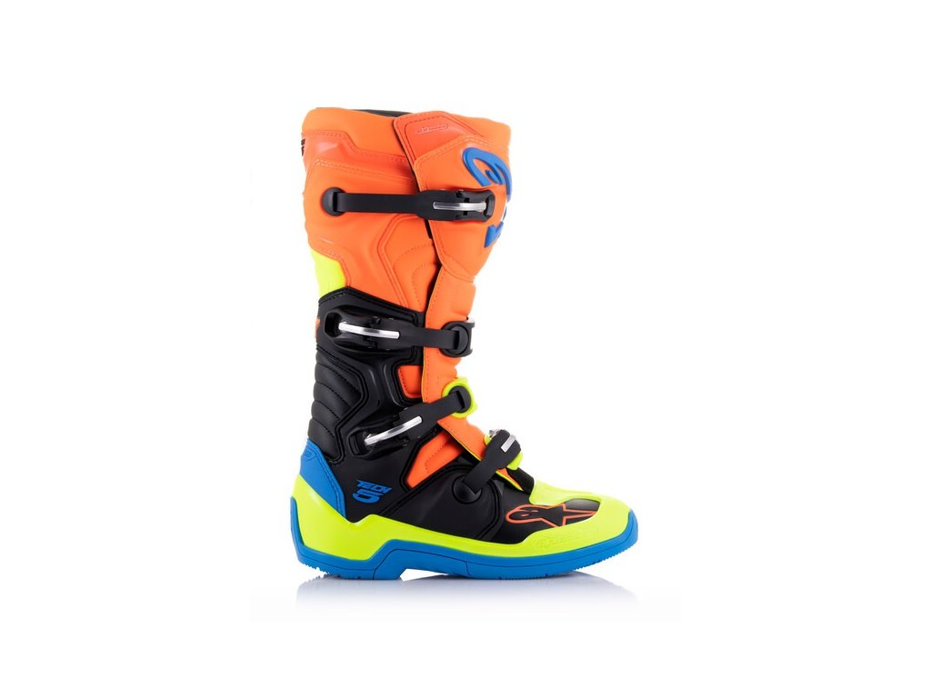 topánky TECH 5 ALPINESTARS oranžová fluo/žltá fluo/modrá/čierna 2025