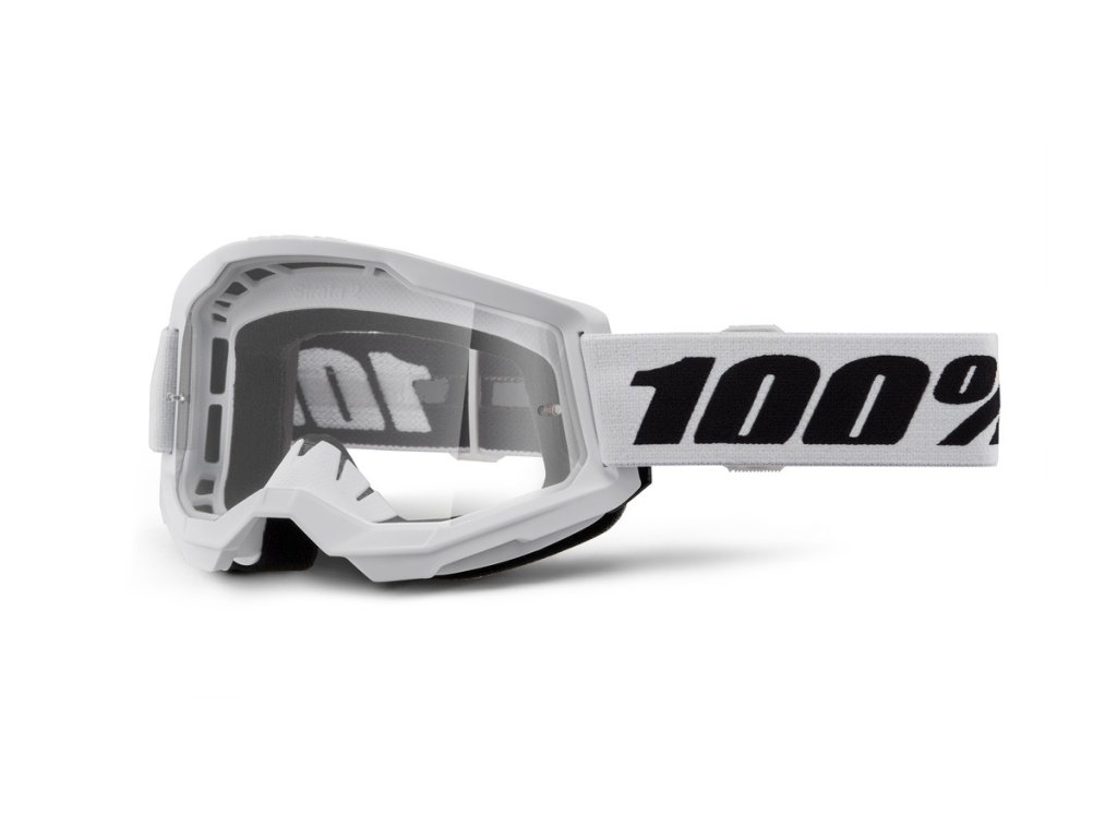 STRATA 2 NOVÉ motokrosové okuliare 100% biele číre plexi