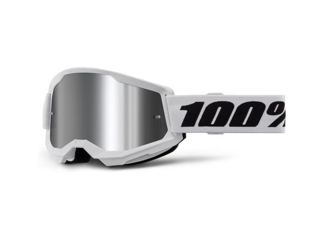 STRATA 2 NOVÉ motokrosové okuliare 100% biele strieborné plexi