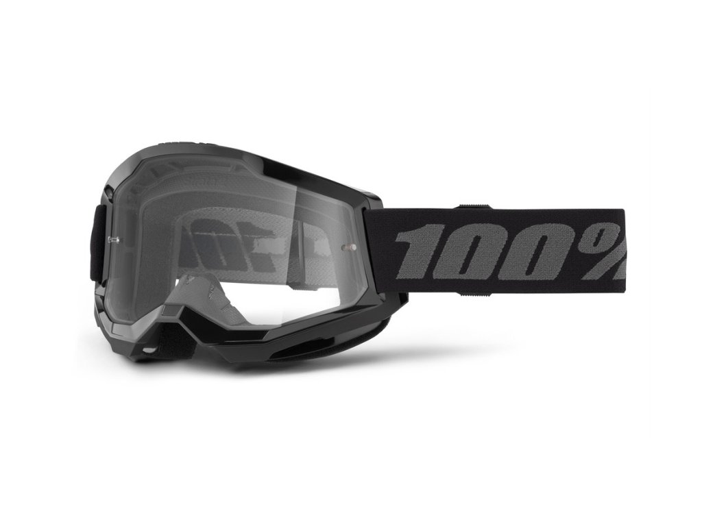 STRATA 2 NOVÉ motokrosové okuliare 100% čierne číre plexi