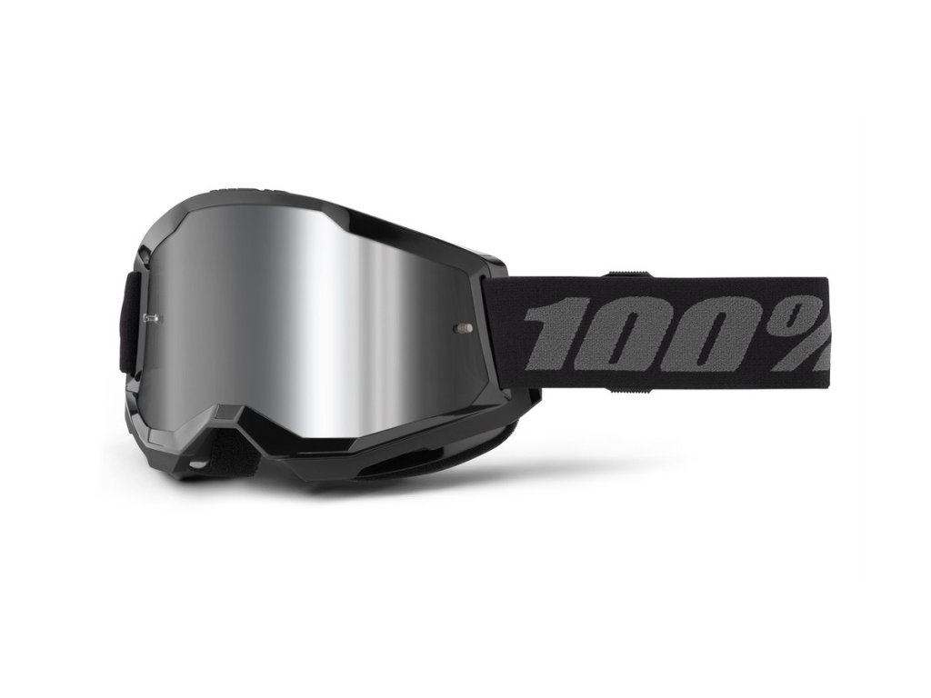 STRATA 2 NOVÉ motokrosové okuliare 100% čierne strieborné plexi