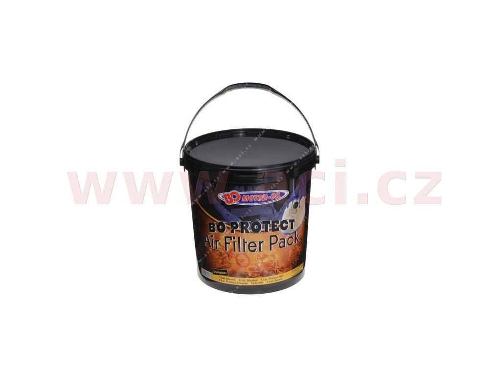 Súprava na údržbu penových vzduchových filtrov. 1x čistiaci prostriedok na filtre, 1x konzervačný prostriedok na filtre, 1x vedro na čistenie, 1x vedro na uloženie súpravy, 1x mriežka na odkvapkávanie čistiaceho prostriedku.