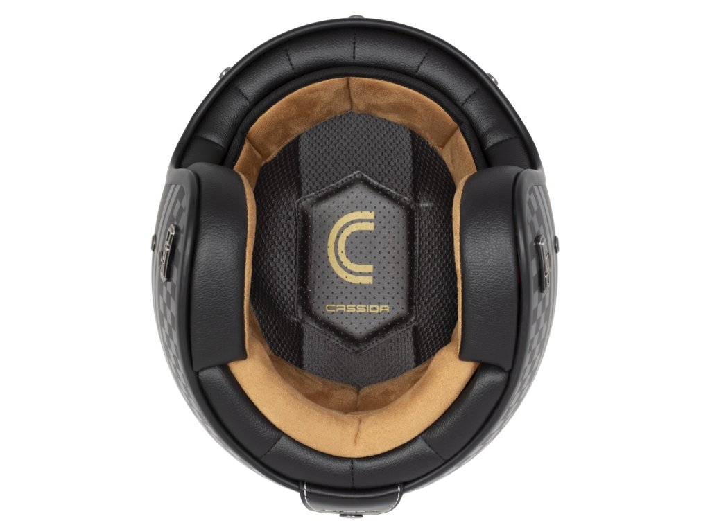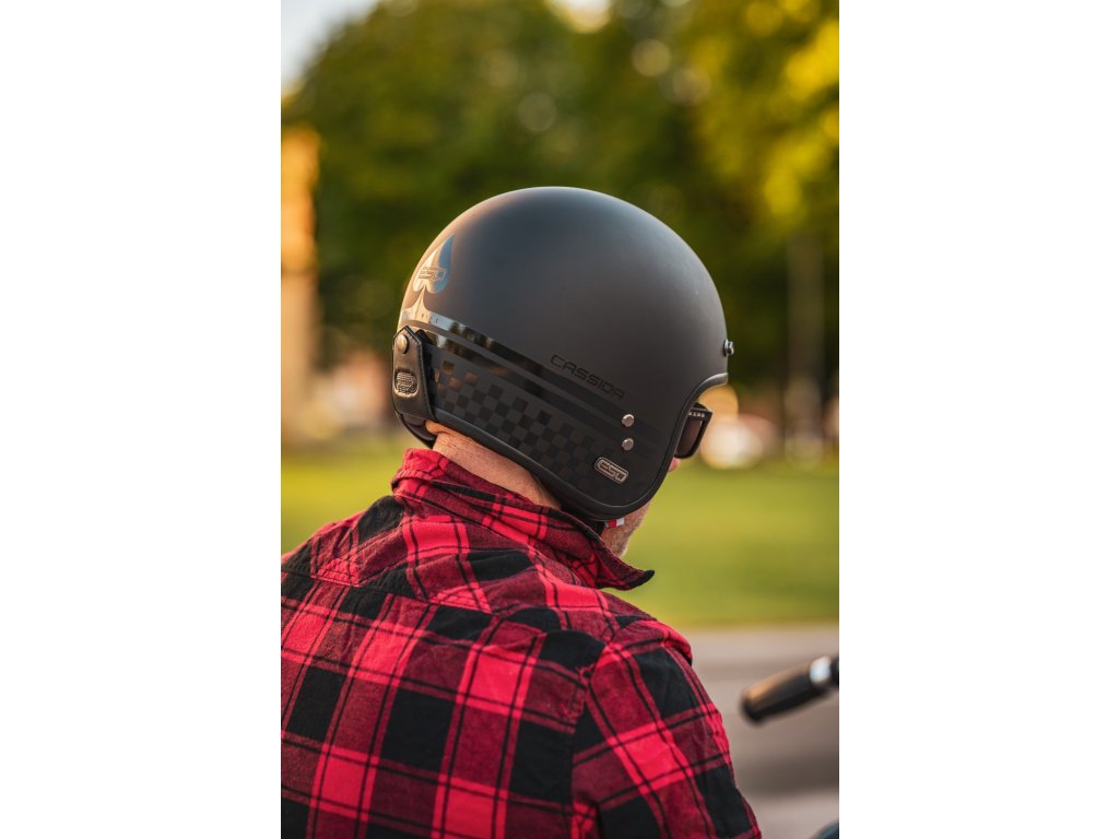 CASSIDA ESO je model otvorenej neo retro prilby so sklolaminátovou škrupinou, ktorá má štandardy prémiových prilieb tejto kategórie a spĺňa bezpečnostné a certifikačné normy súčasných prilieb.
