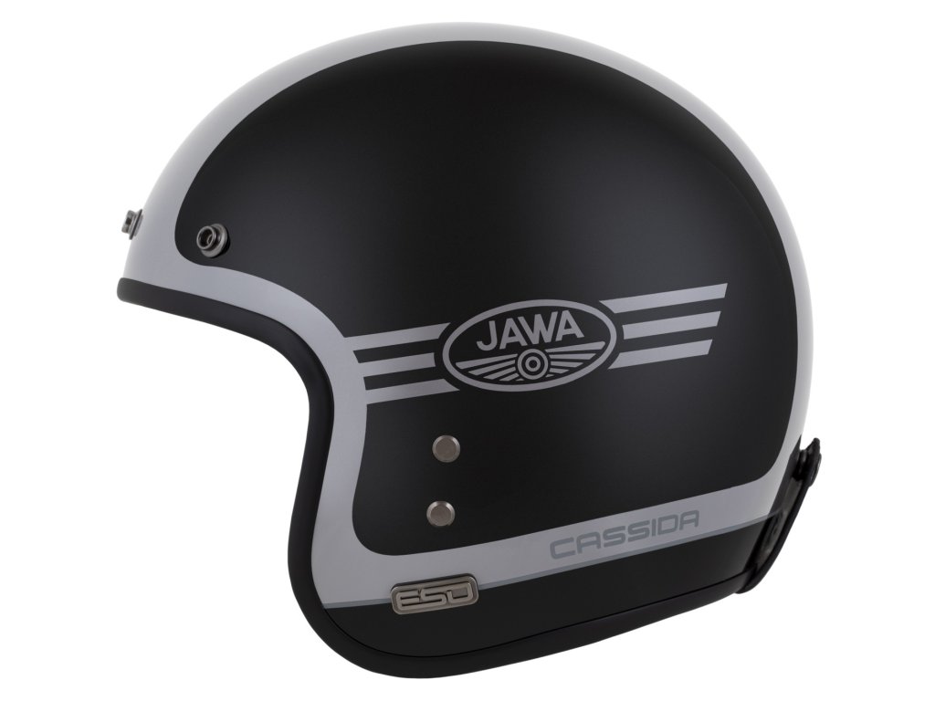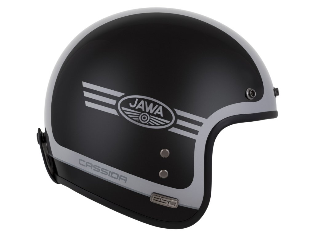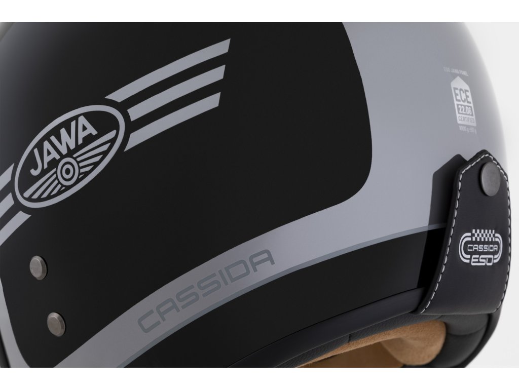 CASSIDA ESO je model otvorenej neo retro prilby so sklolaminátovou škrupinou, ktorá má štandardy prémiových prilieb tejto kategórie a spĺňa bezpečnostné a certifikačné normy súčasných prilieb.