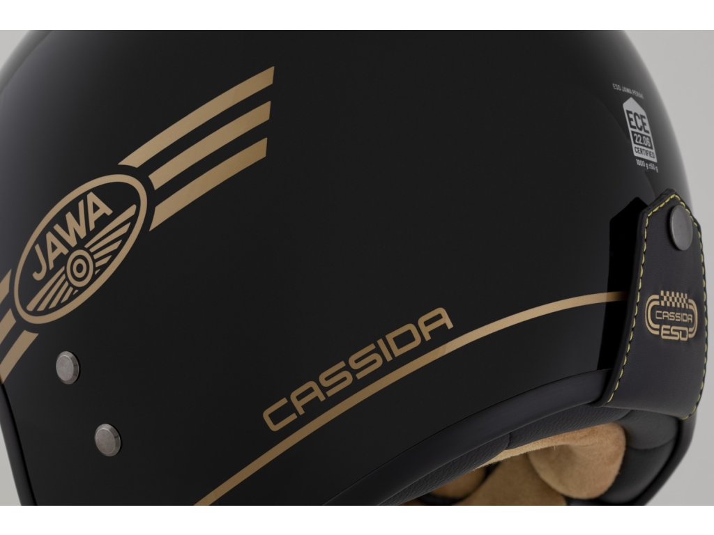 CASSIDA ESO je model otvorenej neo retro prilby so sklolaminátovou škrupinou, ktorá má štandardy prémiových prilieb tejto kategórie a spĺňa bezpečnostné a certifikačné normy súčasných prilieb.