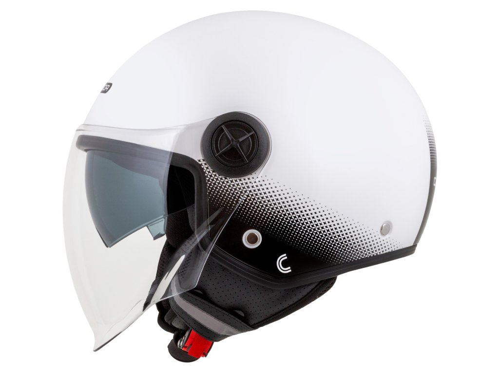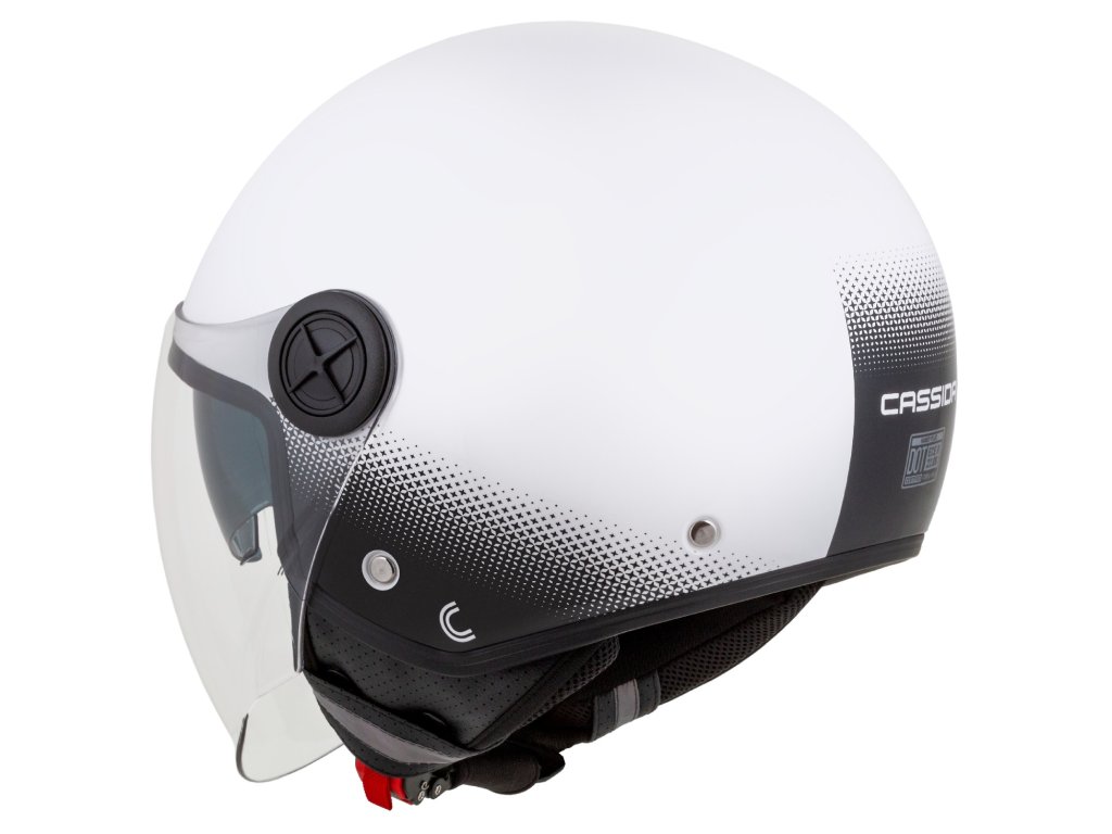 - Nízky profil škrupiny DEMI JET poskytuje pohodlné uloženie v kufri skútra.