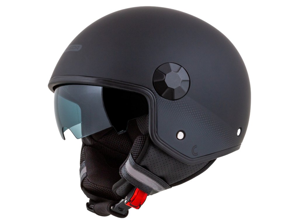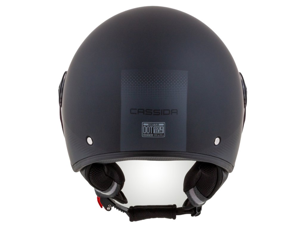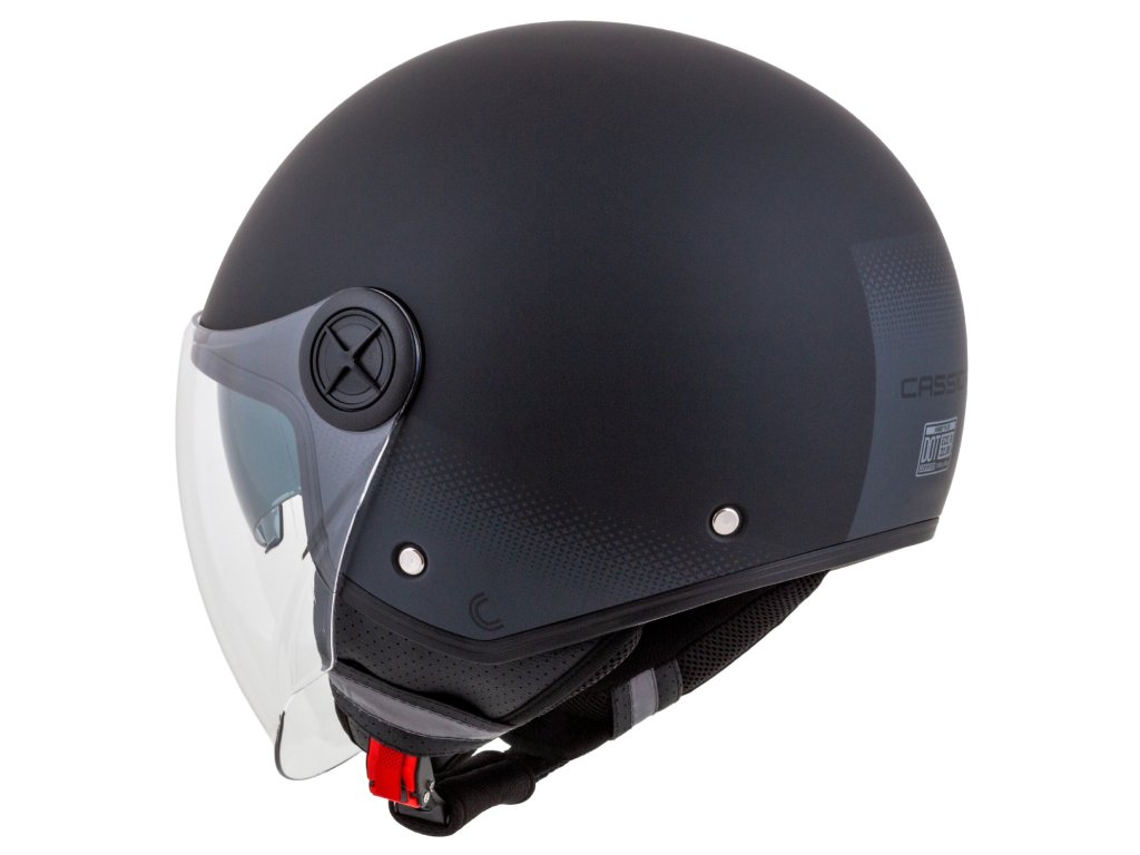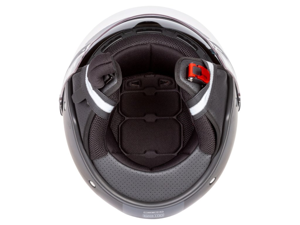 - Nízky profil škrupiny DEMI JET poskytuje pohodlné uloženie v kufri skútra.