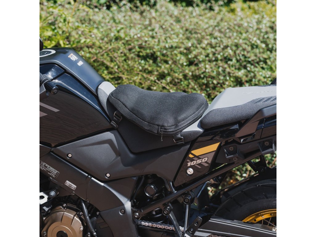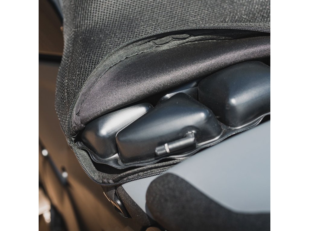 Verzia AIR SEAT ADVENTURE AND TOURING je vyprofilovaná tak, aby bola kompatibilná s väčšinou sediel cestovných a dobrodružných enduro motocyklov a poskytovala extra pohodlie počas dlhých jázd v sedle. 13 jednotlivých vzduchových vankúšikov znižuje otlaky, pomáha prekrvovať oblasť sedla a znižuje nárazy spôsobené vibráciami. Vonkajší textilný poťah zo silnej priestorovej sieťoviny poskytuje priedušnosť, ventiláciu a absorbuje pot.