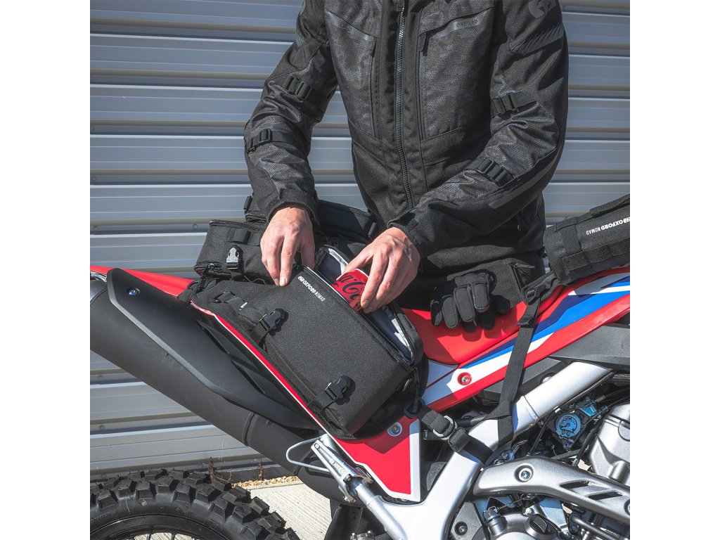 - Jak to funguje? Velmi jednoduše! Na motocykl zvolíte nosné popruhy, které mají mnoho oček. Pak vyberete z velkého množství batohů a brašen. Tyto brašny lze snadno přichytit na Vámi zvolené popruhy a to do míst ve kterých je potřebujete. Brašny lze kombinovat jakkoliv mezi sebou a lze je vrstvit jednu na druhou dle Vašich potřeb
