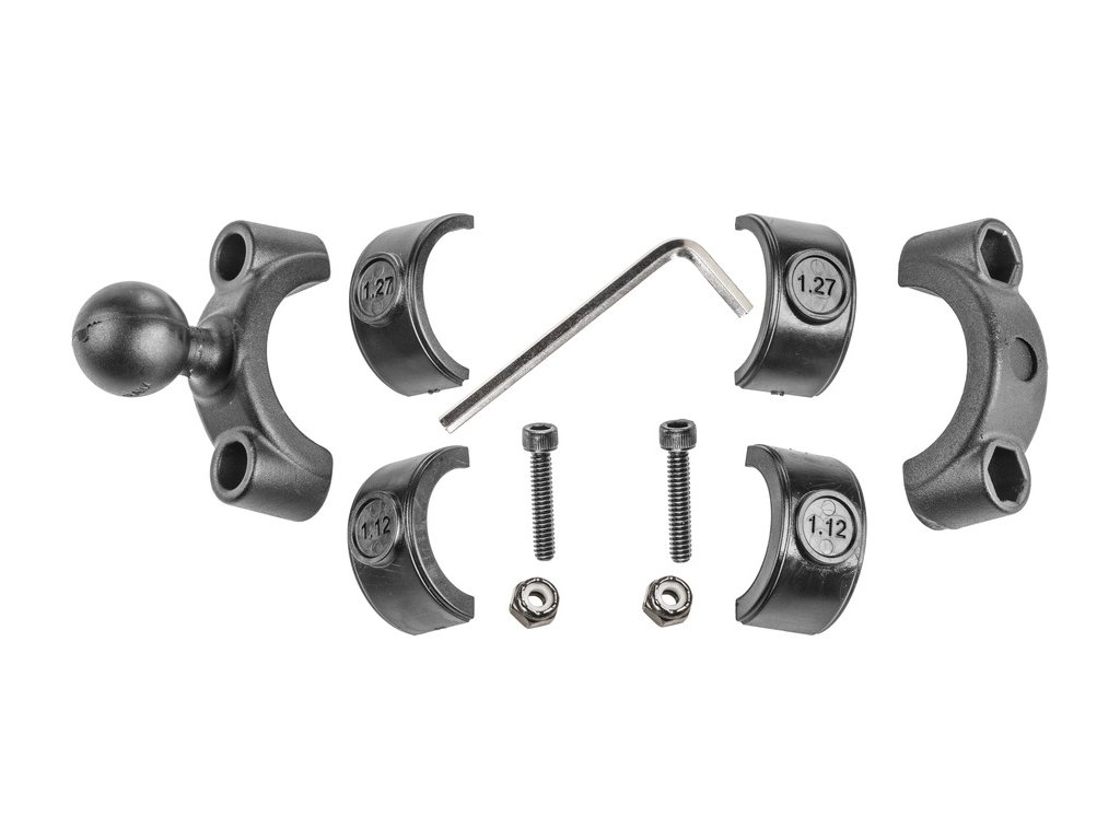 Momentová svorka pre motocykel alebo skúter, bicykel, invalidný vozík alebo jednoducho akúkoľvek trubku s priemerom 28,56 - 38,1 mm s guľovým čapom. Svorka má aj nylonové vložky, ktoré zabraňujú náhodnému uvoľneniu pri vysokých vibráciách.