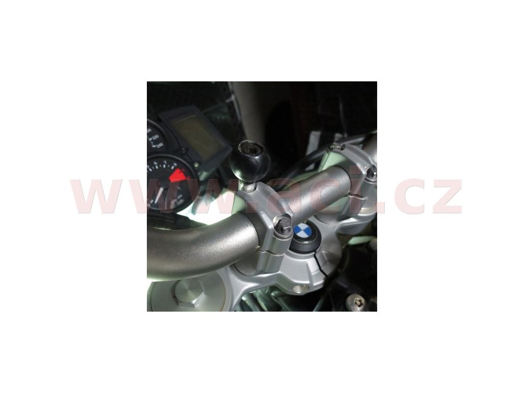 Držiak na motocykel alebo skúter primárne pre svorku na riadidlá s guľovým čapom. Držiak sa pripevňuje na závity akejkoľvek skrutky M8 a nahrádza pôvodnú skrutku. Patentovaný guľový čap je vyrobený z kvalitnej gumy, ktorá absorbuje nárazy a vibrácie, ktoré by sa inak prenášali na namontované elektronické zariadenie.