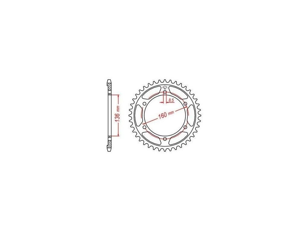 oceľové reťazové koleso pre sekundárne reťaze typ 520 JT - Anglicko 44 zubov