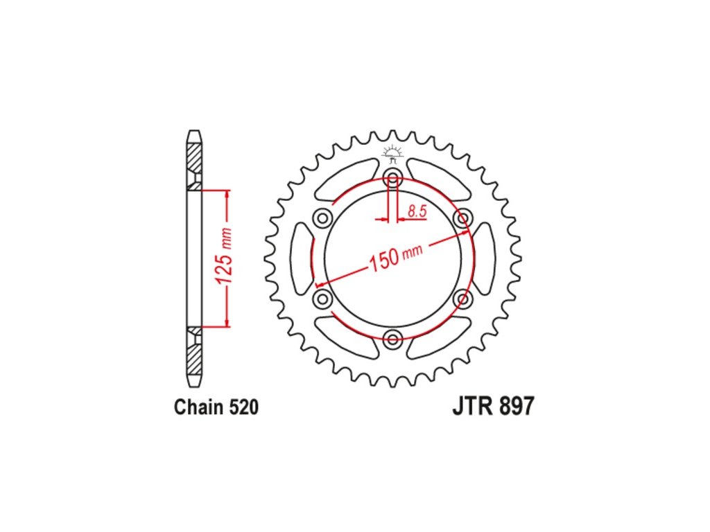 oceľové reťazové koleso pre sekundárne reťaze typ 520 JT 51 zubov