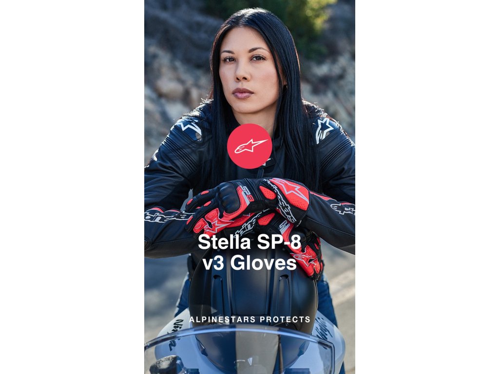Rukavice SP-8 tretej generácie sú obľúbené dlhé športové rukavice, ktoré nesú pretekársku DNA značky ALPINESTARS. Podšívka rukavíc je vyrobená z kozej kože v kombinácii so syntetickým mikrovláknom. Obsahuje viacpanelové usporiadanie s integrovanými chráničmi na dosiahnutie vysokého štandardu ochrany proti oderu a zároveň pohodlia. Chránič zápästia pozostáva z plastového chrániča TPU. Dvojité zapínanie manžety na suchý zips a strečový mostík medzi palcom a ukazovákom poskytujú zvýšené pohodlie. Variant strihu z dámskej kolekcie STELLA.