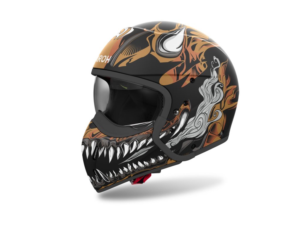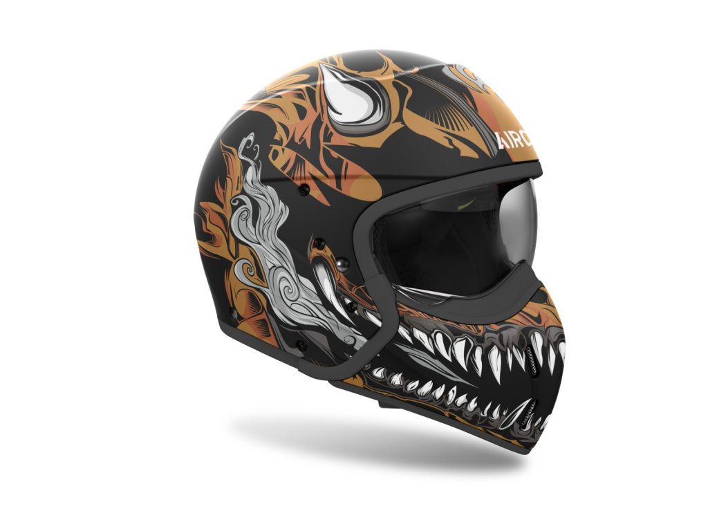 - Vnútorný priestor z tkaniny s 3D štruktúrou, ktorá znižuje silu prenášanú na hlavu pri náraze (ASN: Airoh Sliding Net).