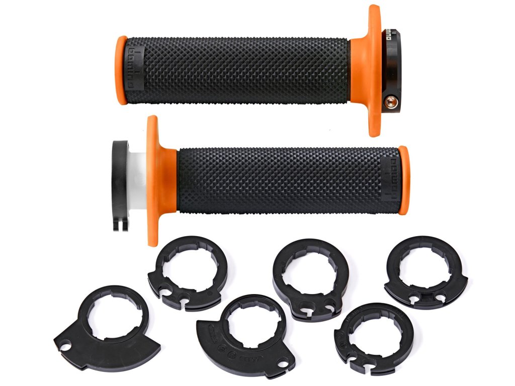 gripy LOCK-ON D100 offroad délka 125/130 mm 6 vaček DOMINO černo-oranžové