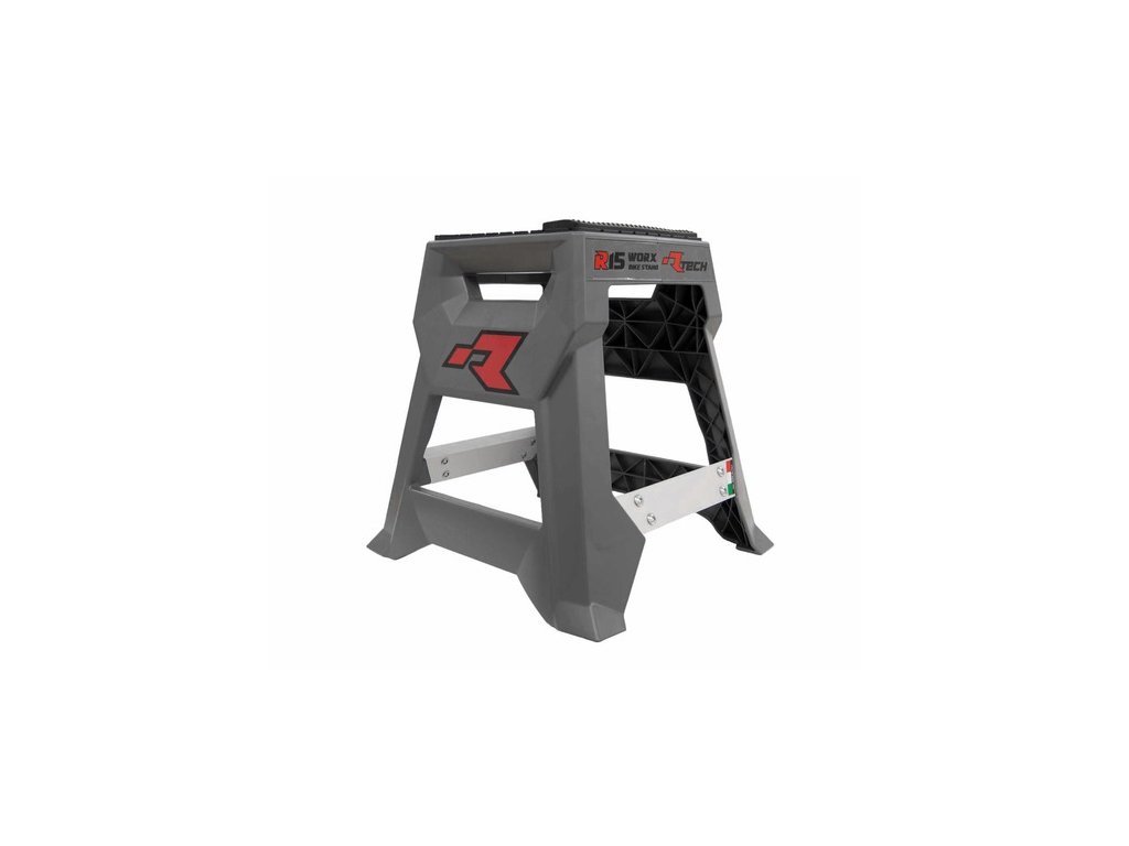 Stojan R15 WORX BIKE STAND je primárne určený pre motokrosové/enduro motocykle. Je vyrobený z farebného technopolyméru - na vrchnej strane je čierna gumová protišmyková vrstva, bočné strany sú vyrobené z eloxovaného hliníka.