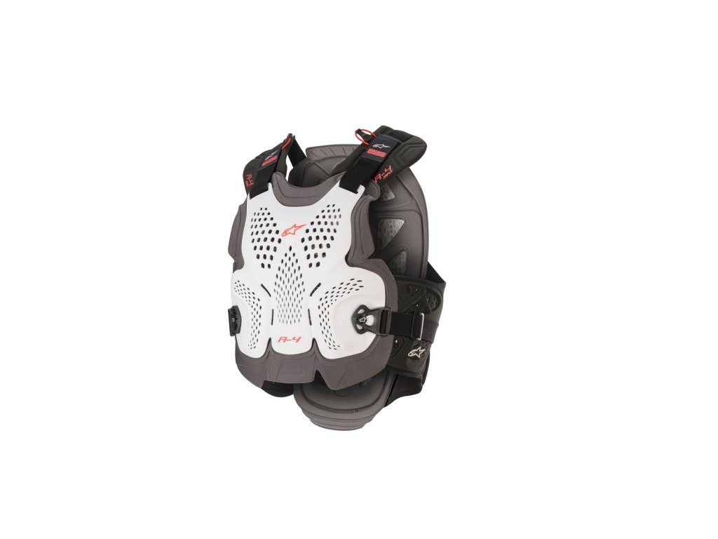 Ultraľahký systém ochrany trupu poskytuje dokonalú ochranu proti nárazom a odletujúcim kameňom v oblasti hrudníka, CE EN 14021 (ochrana proti odletujúcim kameňom). Chránič A-4 MAX má predný a zadný panel s pevnou plastovou škrupinou s rozšíreným a predĺženým zadným chráničom v porovnaní s modelom A-1 PLUS. Chránič je bohato polstrovaný, pohodlný s odolnou a ľahko umývateľnou penovou vložkou BIO-FOAM pre bezpečné a pohodlné nosenie. Rýchle a jednoduché nasadenie chrániča zabezpečuje rozšírené horné polstrovanie, ktoré chráni pred otlačením bez toho, aby bránilo voľnému pohybu ramien, a je plne kompatibilné s použitím krčných golierov ALPINESTARS BNS.
