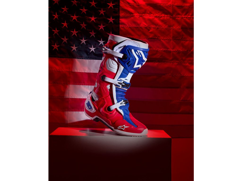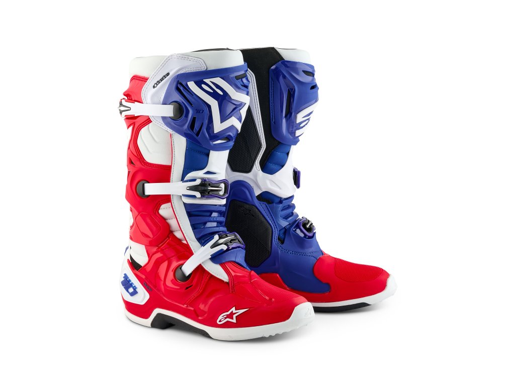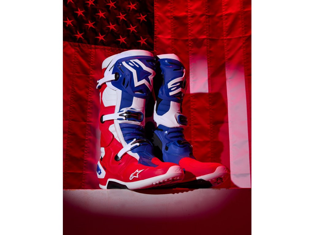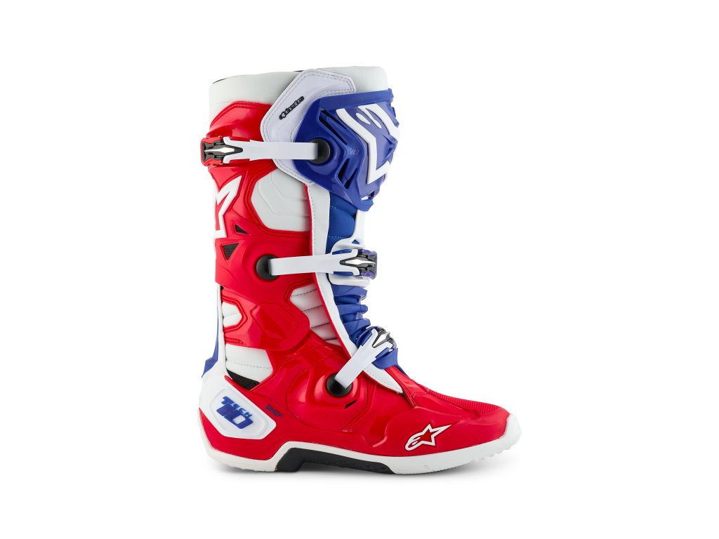 boty TECH 10 limitovaná edice FORTITUDE ALPINESTARS bílá/modrá/červená 2025
