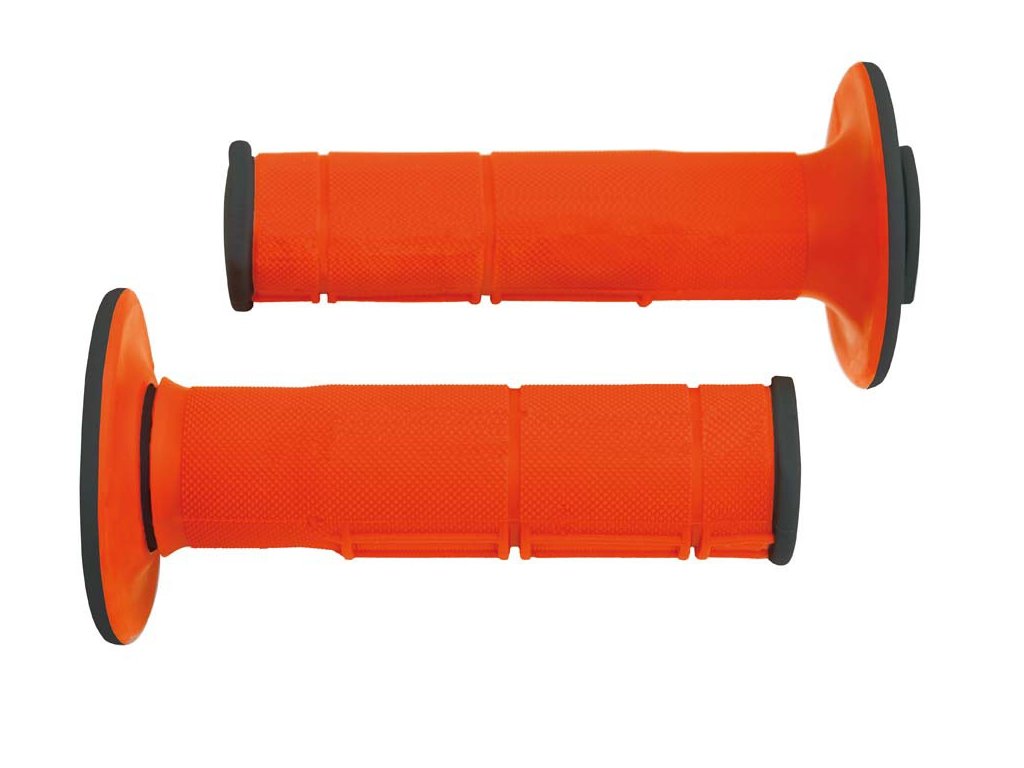 závodné gripy dvojvrstvové mäkké RTECH oranžovo-čierne pár dĺžka 116 mm