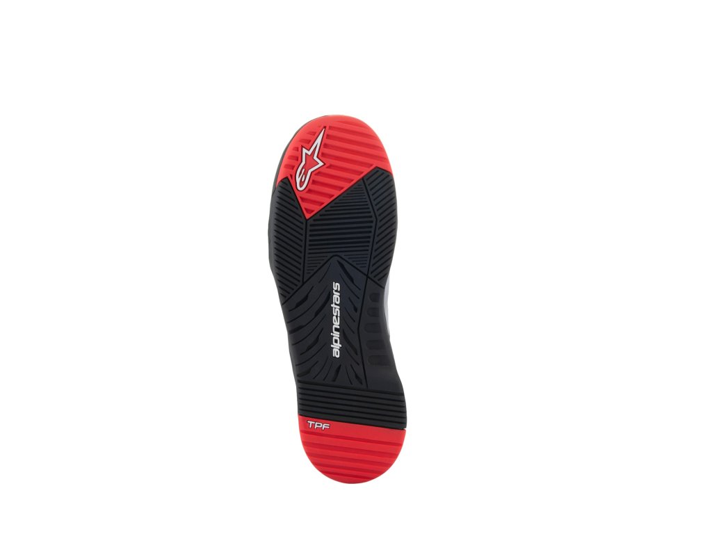 - Podrážka má pružný mostík TPF (Transversal Protection Frame) a vnútorný absorpčný panel v oblasti päty v kombinácii so zvýšeným dopadom na špičku (10 mm) zaisťuje podporu a ochranu chodidla počas jazdy a je pohodlná pri chôdzi.