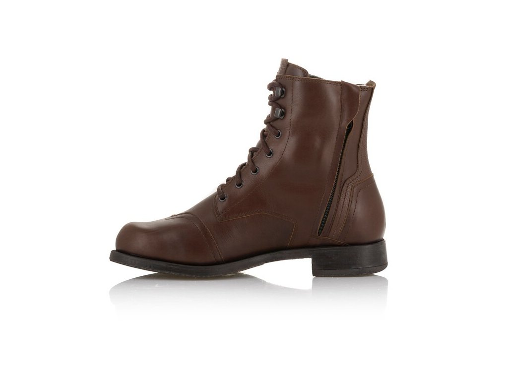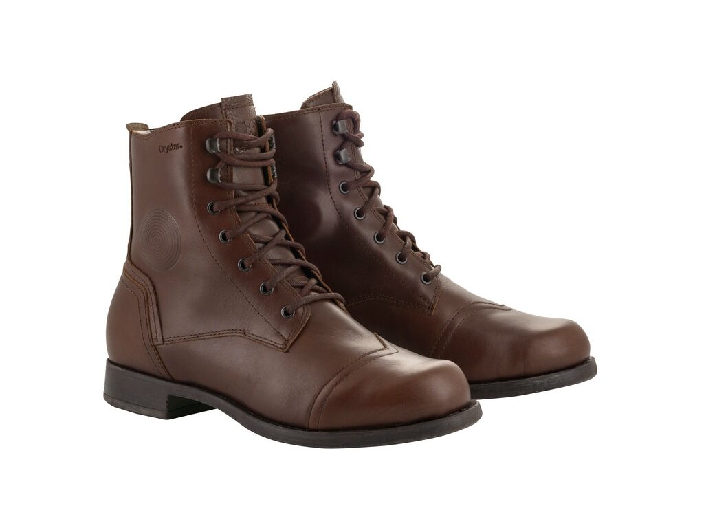 Klasická topánka cez priehlavok z kolekcie ALPINESTARS OSCAR s podšívkou z výberovej hovädzej kože a špecifickou povrchovou patinou má podšívku s nepremokavou a priedušnou klimatickou membránou DRYSTAR®. Táto obuv, vhodná na presuny v meste na skútri aj na víkendové jazdy na klasickom motocykli, odkazuje na bohaté dedičstvo a históriu značky ALPINESTARS spolu s využitím najmodernejších technológií. Topánky majú certifikát CE.