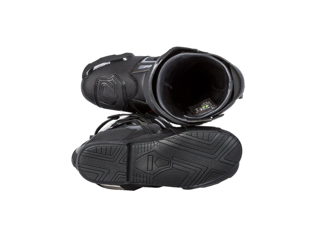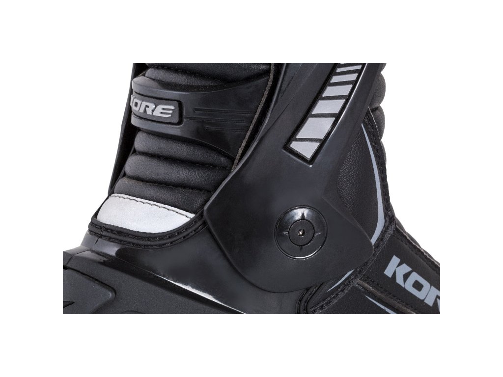 - Zapínanie v kombinácii zipsu, pásikov na suchý zips a pracky na lýtku.