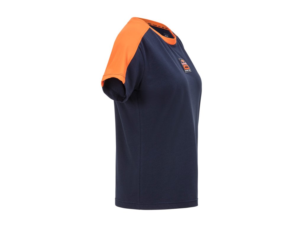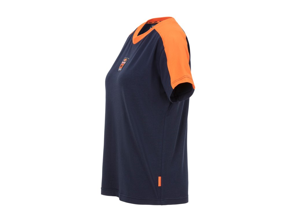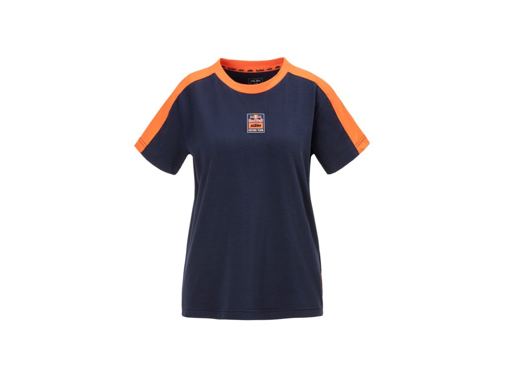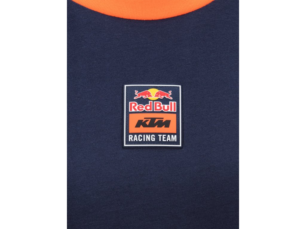 Fanúšikovské tričko z oficiálnej kolekcie KTM Red Bull Racing. Tmavomodré tričko s jedinečnou potlačou KTM Red Bull Racing na zadnej strane. Logo a farby tímu.