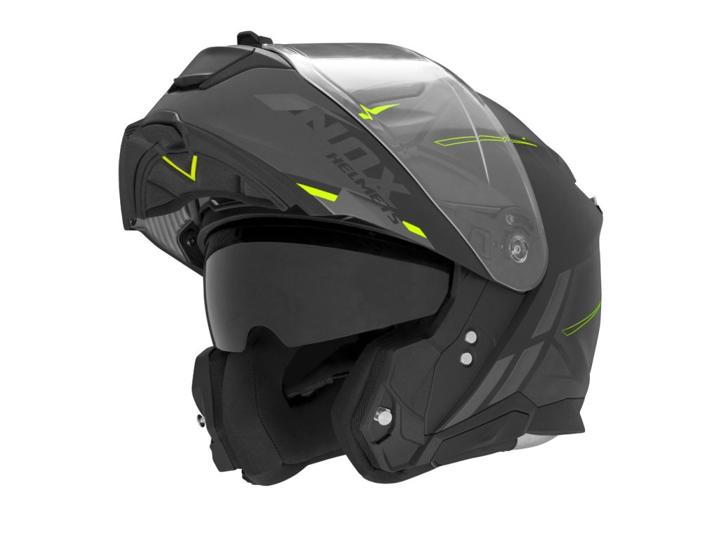 N967 je výklopná cestovná prilba s modernými tvarmi škrupiny, prípravou na pinlock a prípravou na náhlavné súpravy komunikátora.
