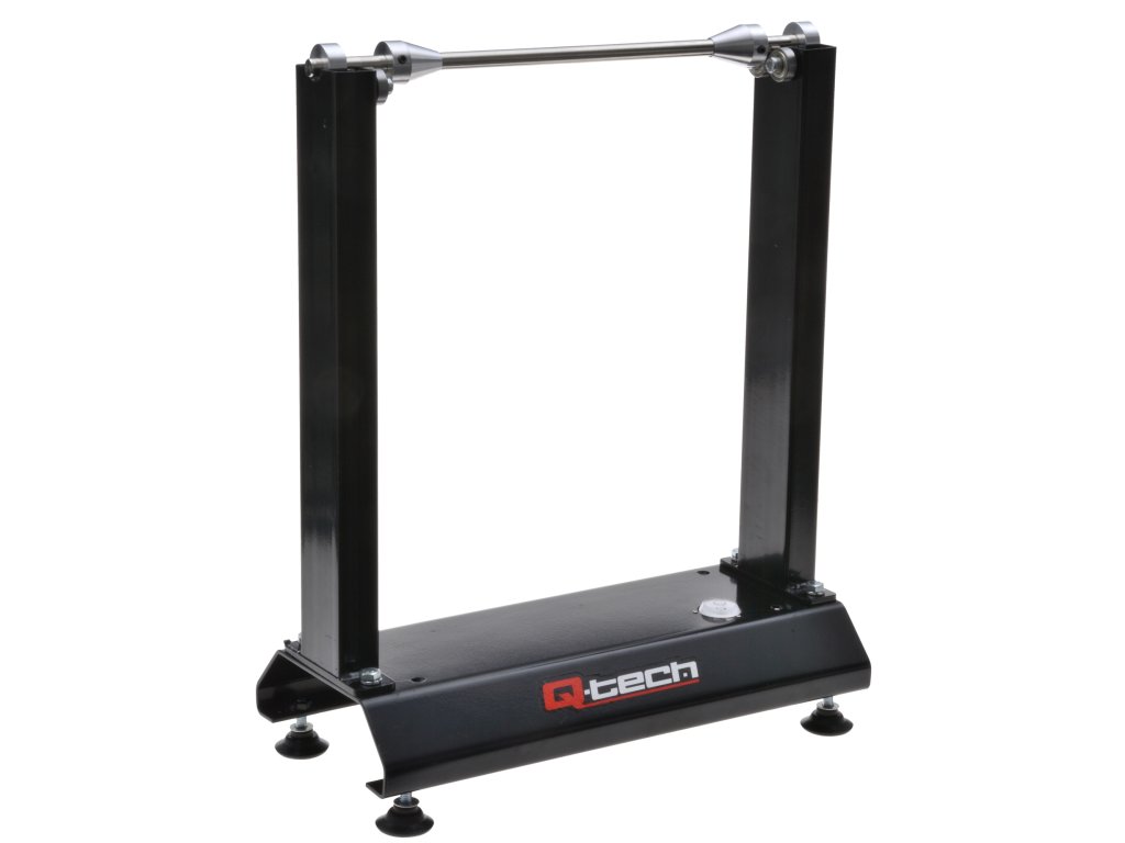 Os s priemerom 1,4 cm sa otáča na 4 guľôčkových ložiskách, nástavce v tvare ihly slúžia na upnutie ráfika s priemerom stredového otvoru 1,4 - 3 cm, zarážky eliminujú bočný pohyb osi.