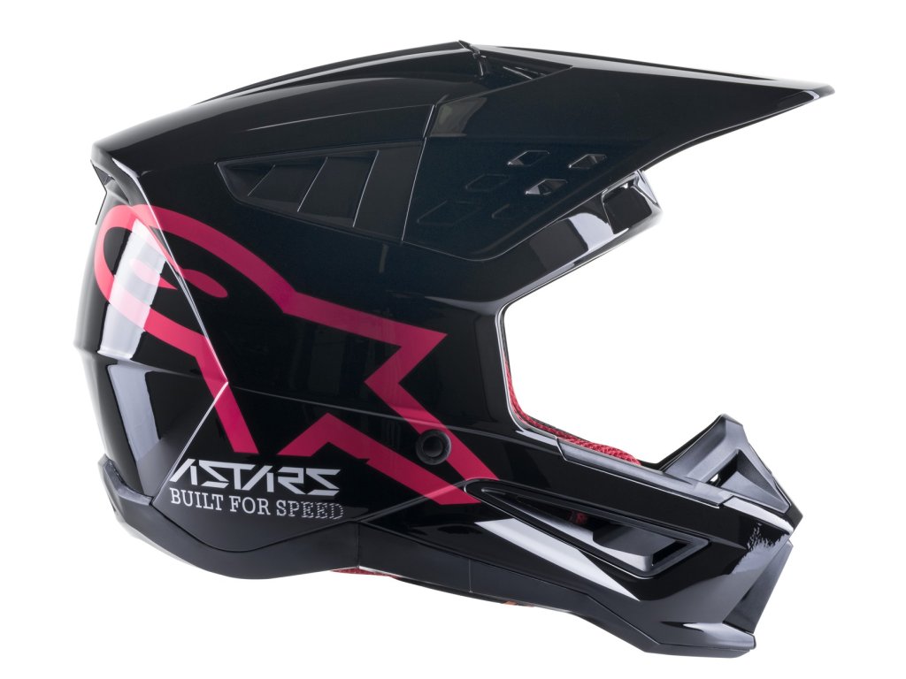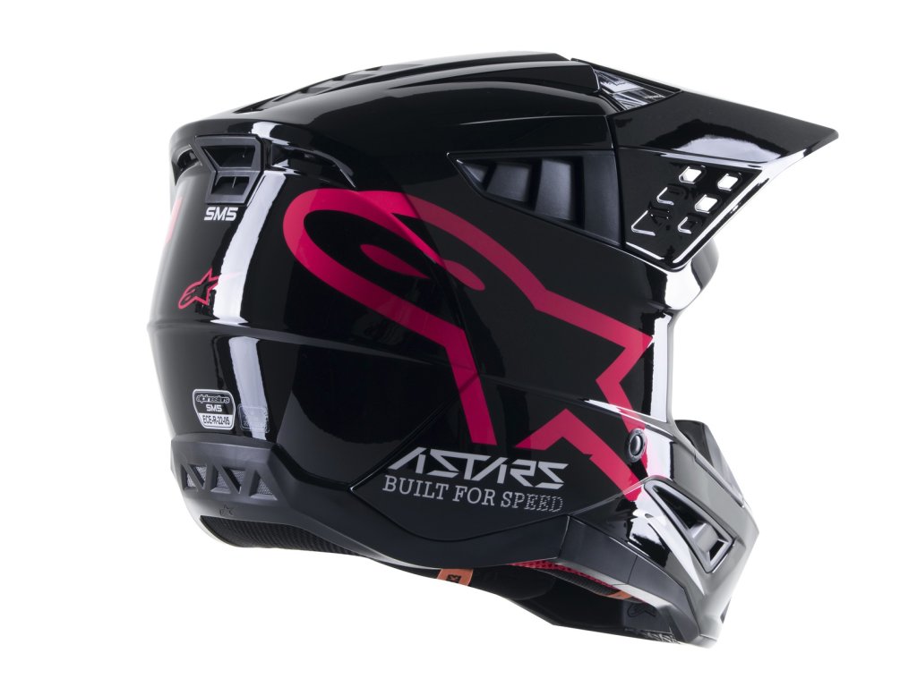 Nový model prilby S-M5 je výsledkom viac ako 5 rokov intenzívneho výskumu, vývoja a testovania. Cieľom bolo vyrobiť prilbu, ktorá je bezpečná a navrhnutá tak, aby poskytovala optimálnu kombináciu ochrany a pohodlia. Ľahká škrupina je vstrekovaný termoplast vyrobený zo špeciálnej zmesi polymérov, ktorá sa na požadovaných miestach vstrekuje v rôznych hrúbkach. Tým sa dosahuje vynikajúca ochrana proti nárazovým silám na potrebných plochách s dobrým pomerom hmotnosti prilby. Viacpanelové jadro prilby s panelmi EPS s piatimi rôznymi hustotami zabezpečuje správnu hustotu EPS v konkrétnej časti prilby. Medzi ďalšie dôležité vlastnosti patrí konštrukcia polstrovania v spodnej/bočnej časti prilby v oblasti goliera, ktorá zabezpečuje účinné rozloženie síl prenášaných do oblasti hornej časti kľúčnej kosti. Prilba obsahuje priezor s patentovaným rýchloupínacím mechanizmom na uvoľnenie priezoru v prípade pádu, podobne ako pri vyšších modeloch z radu terénnych prilieb ALPINESTARS.