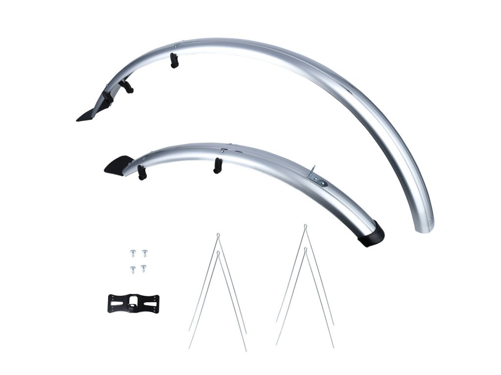 aTP CITY sada predného/zadného blatníka pre použitie na 26" kolesách OXFORD strieborná šírka 60 mm vrátane kotviacich vzpier