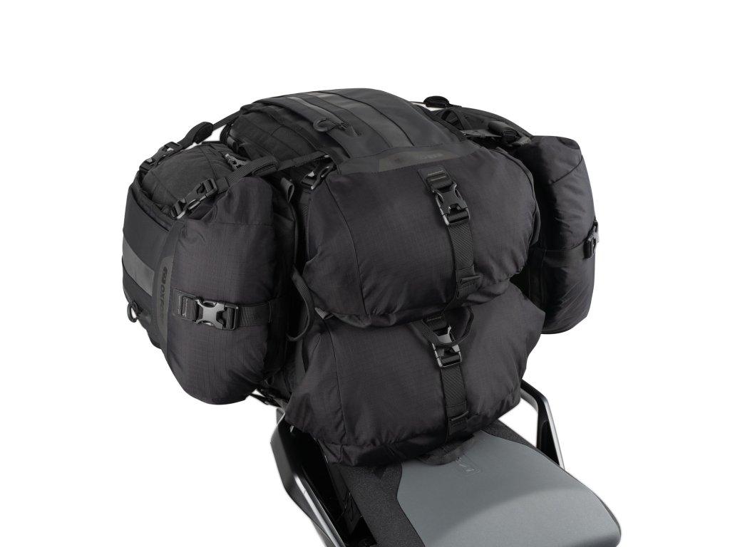 Obrovskou výhodou je jednoduchý a rýchly systém montáže a prístup k vreckám. Brašne sú vždy prístupné, aj keď je ich k sebe pripevnených niekoľko. Nie je teda potrebné brašne odpojovať, aby ste sa dostali k svojim veciam. Ich stabilitu zabezpečujú kompresné popruhy. Vaše veci budú chránené aj pred nepriaznivým počasím vďaka vodotesnej konštrukcii. Vnútorný nepremokavý priestor možno úplne vybrať alebo dokonca zdvojiť, aby bol obsah oddelený, a možno pridať nepremokavé vložky s objemom 10 l, 20 l alebo 30 l. Jednoduchý a funkčný rolovací systém zabezpečuje vodotesnosť. Ak chcete rýchlo odísť od bicykla a svojich vecí, môžete sa spoľahnúť na jeho univerzálny systém Fast Fit, ktorého súčasťou je ramenný popruh.