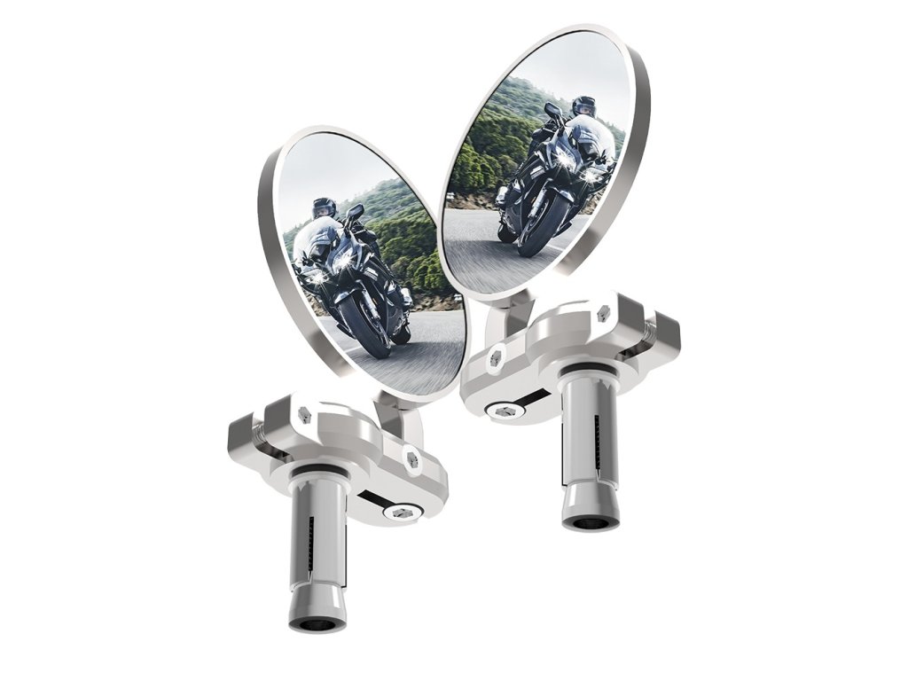 univerzálne spätné zrkadlo pre konce riadidiel pre vnútorný priemer 13 mm OXFORD strieborné zrkadlo s priemerom 68 mm pár